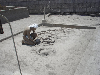 Next to the restaurant are some statues representing workers kneading the mud and making adobe blocks. The footprints and unfinished blocks are actually the originals, excavated in situ! These statues have also inspired some projects we've undertaken at our own museum.